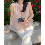 ブラウス シャツ バイカラーキャンディースリーブシアーブラウス レディース