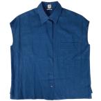 エルメス HERMES ロゴ ノースリーブ ブラウス サイドスリット シャツ トップス ブラウス 麻 綿 ブルー レディース 中古