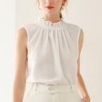 ノースリーブブラウス フリル 立ち襟 レディースシャツ ノースリーブ サマーシャツ ノースリーブシャツ きれいめ ブラウス 夏 フォーマル オフィス