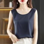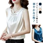 ブラウス ノースリーブ トップス インナー レディース 薄手 ブラウス ブラウス シャツ タンクトップ ブラ紐隠し キャミソール インナー 光沢感 袖