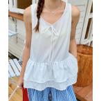ブラウス シャツ ティアードリボンノースリーブブラウス レディース