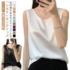 シルク調 タンクトップ ラウンドネック レディース サテン ブラウス 大きいサイズ ショート丈 ノースリーブ トップス インナー 上品 重ね着 肌着 光沢感 ツルツル 透けない ブラ紐隠し 薄手 ゆったり 大人 無地 OL オフィス 春夏 母の日 プレゼント S-3XL 12色 送料無料