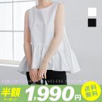 ノースリーブ ペプラムブラウス 裾フリル ノースリ トップス 春 夏 レイヤード 無地 重ね着 チュニック お尻 お腹 即納