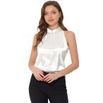 uxcell Allegra K 無地ブラウス ノースリーブトップス プリーツ ホルターネック パール飾り サテン 夏 レディース ホワイト M
