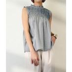 ブラウス シャツ コットンボイル 袖プリーツノースリーブシャツ レディース