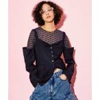 ブラウス シャツ フェザー切り替えノースリーブブラウス レディース