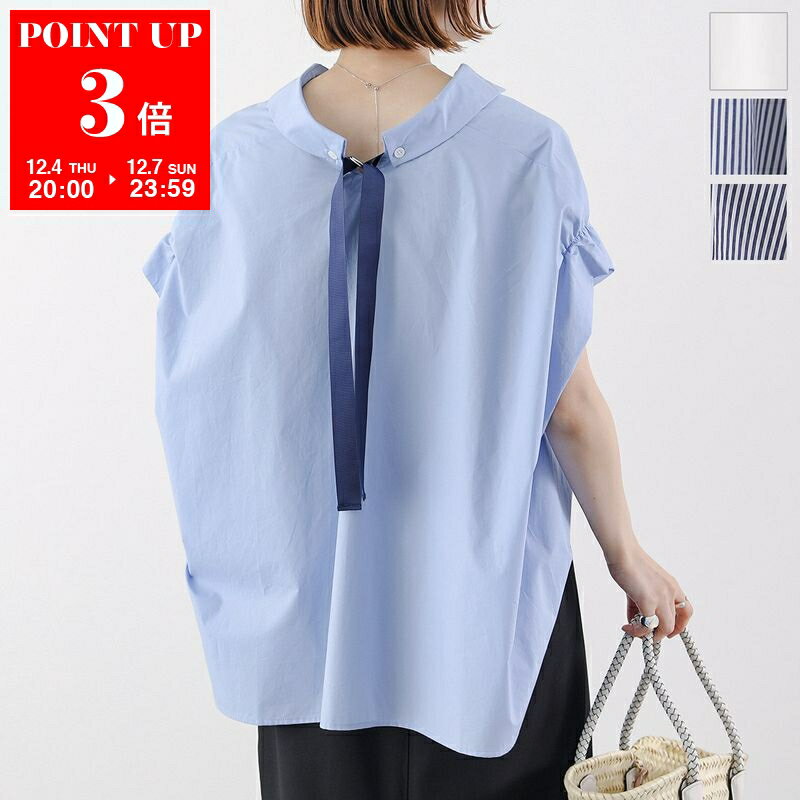 ブラウス シャツ ノースリーブボウタイシャツ レディース
