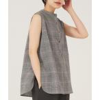 タンクトップ ノースリーブ スタンド2wayチュニックチェックブラウス/ノースリーブトップス/オフィスカジュアル/夏服 レディース