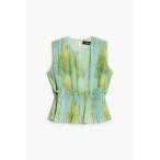 ブラウス シャツ チュールフリンジジャガードノースリーブブラウス レディース