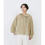 ブラウス シャツ グランジリネン裁ち切りフリルカラーブラウス レディース