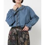 ブラウス シャツ B2929 インディゴシャンブレーフリルシャツ レディース
