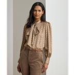 ブラウス シャツ ジオプリント ツイル タイネック ブラウス レディース
