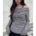 ブラウス シャツ プリントレイヤード風オフショルダートップス レディース