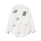 ブラウス シャツ 刺繍×プリント ロゴ ブロードシャツ レディース