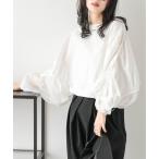 ブラウス シャツ 「forksy.」「オケージョン対応」ギャザーハイネックシアージャガードプルオーバー レディース