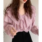 ブラウス シャツ シアーフリルVネックプルオーバーブラウス レディース