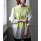 ブラウス シャツ SHIPS Colors:「手洗い可能」プリーツ ニット コンビ プルオーバー レディース