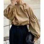 ブラウス シャツ スタンドカラー袖ギャザーボリューム袖プルオーバーブラウス レディース