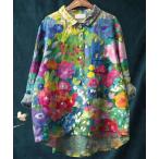 ブラウス シャツ アート柄シアープルオーバーシャツ レディース メンズ