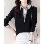 ブラウス シャツ ストライプシャツ×プルオーバードッキングトップス レディース