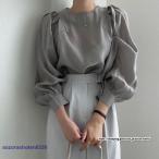 パフスリーブブラウス レディーストップスシャツ 長袖 春夏服 透け感 丸首 フリル プルオーバー 長袖ブラウス シャツブラウス オフィス 大人 卒業式 入学式 20代