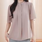 ソリッドカラー クルーネック 半袖 タック ブラウス 女性 レディース トップス プルオーバー シフォン 透け感 シアー 春 夏 単色 無地