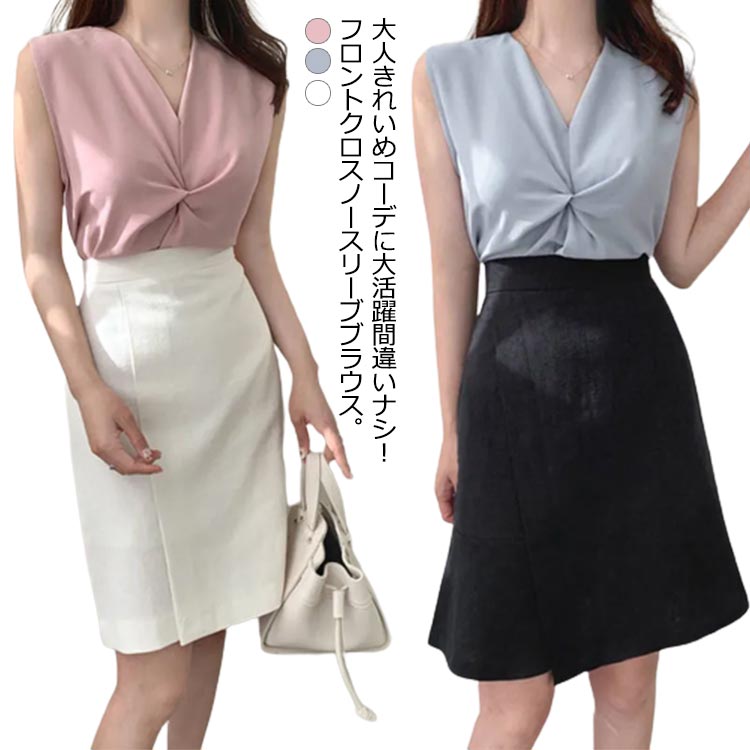 ノースリーブ リボン おしゃれ 20代 クロス Vネック フロント レディース トップス カジュアル オフィス 大人 プルオーバー 薄手 冷感 涼感 韓国風 無地 きれいめ ブラウス 大人可愛い 30代 40代 50代 大きいサイズ 通勤