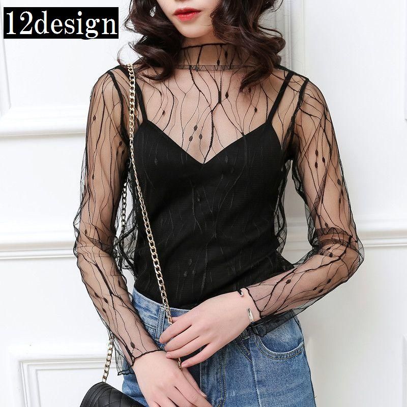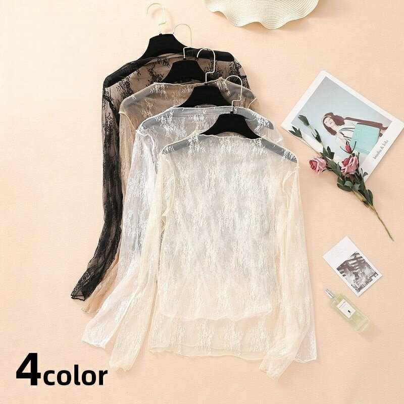 送料無料 ブラウス 長袖 レディース トップス プチハイネック 総レース シースルー 透け感 シアー 重ね着 レイヤード プルオーバー 肌見せ 婦人用 女性用 着回し セクシー おしゃれ