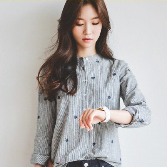 【送料無料】ブラウス レディース バンドカラーシャツ ストライプ トップス プリント スタンドネック チュニック 刺繍 オーバーサイズ Tシャツ ロングシャツ ゆったり プルオーバー 7分袖 大きいサイズ きれいめ おしゃれ 春 夏 秋 体型カバー カジュアル