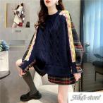 ニット セーター ブラウス トップス 長袖コート コート レディース ロング丈 長袖 ショート Uネック チェック ゆったり 着痩せ シンプル きれいめ 秋