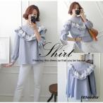 胸元フリル プルオーバーブラウス ブラウス シャツ フリル レース プルオーバー ハイネック 長袖 ゆったり ガーリー カジュアル レディース トップ
