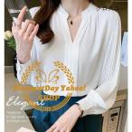 シャツ ブラウス シフォン 長袖 レディース プルオーバー フォーマル カットソー Vネックルー ビジネススーツ ホワイト シャツ 春スタイル 春夏秋
