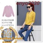 シャツブラウス レディース 長袖 Vネック ビジネス オフィス ストライプ柄 プルオーバー カジュアルシャツ トップス おしゃれ きれいめ