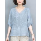 ブラウス シャツ 麻混 襟レース付き プルオーバーブラウス レディース