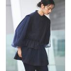 ブラウス シャツ 洗える | チュールMIX ペプラム デザイン シャツ ブラウス | チュール シャツ地 長袖 ボリュームスリーブ バンドカラー ペ