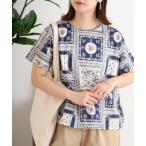 ブラウス シャツ BRODIAEA 綿ローンブラウス 花柄 ハンカチ柄 半袖プルオーバー日本製 レディース