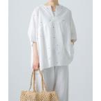 ブラウス シャツ BRODIAEA 花柄半袖ブラウス 総柄プルオーバー 塩縮加工 日本製 レディース