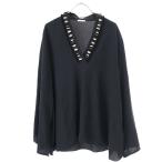 HERMES エルメス 2018 Resort エンブロイダリーVネックプルオーバーブラウス ネイビー 42 ITUNMPUYP3CU