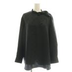 エルメス HERMES スカーフタイ ギャザーシルクブラウス 長袖 プルオーバー 34 黒 ブラック /NR ■OS レディース