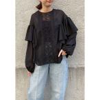 ブラウス シャツ チュールドッキングフラワーレースキャンディースリーブブラウス レディース
