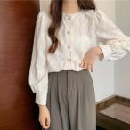 レトロ ブラウス シャツ ボタンシャツ レディース 長袖 トップス レース切り替え 韓国風 オフィスカジュアル おしゃれ 韓国ファッション 大人 ブラウスシャツ