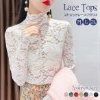 送料無料 レース トップス シャツ ブラウス レディース 長袖 レースインナー レーストップス 着痩せ 細身 ハイネック ストレッチ 伸びる レースシャツブラウス