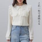 ブラウス レース 長袖 襟 フォーマル トップス レディース 微起毛 シアー 裏地付き フリルネック レースフリル 薄手 白 春夏