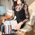レース トップス 長袖 レディース 春 インナー 重ね着 おしゃれ きれいめ ブラウス シアーカットソー シースルー 総レース 透け感