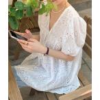 レース トップス 半袖 好評 刺繍ブラウス ブラウス レディース Tシャツ プルオーバー ゆったり 春夏 刺繍 ドルマン 春 可愛い 夏 体型カバー 大きいサイズ 綿 コットン ボリューム袖 五分袖 5分袖 カジュアル ナチュラル レディースファッション