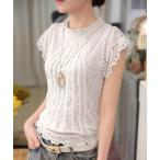 ブラウス シャツ レースデザインフレンチスリーブブラウス レディース