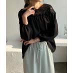 ブラウス シャツ レースデザインスラップブラウス レディース