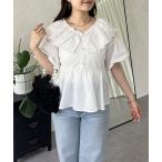 ブラウス シャツ レースビッグカラーバルーンスリーブペプラムブラウス レディース