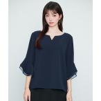 ブラウス シャツ 袖口パールノット結び6分袖ブラウス レディース