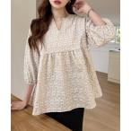 ブラウス シャツ バールネック フクレジャガード ペプラムブラウス 花柄 ボリュームスリーブ レディース